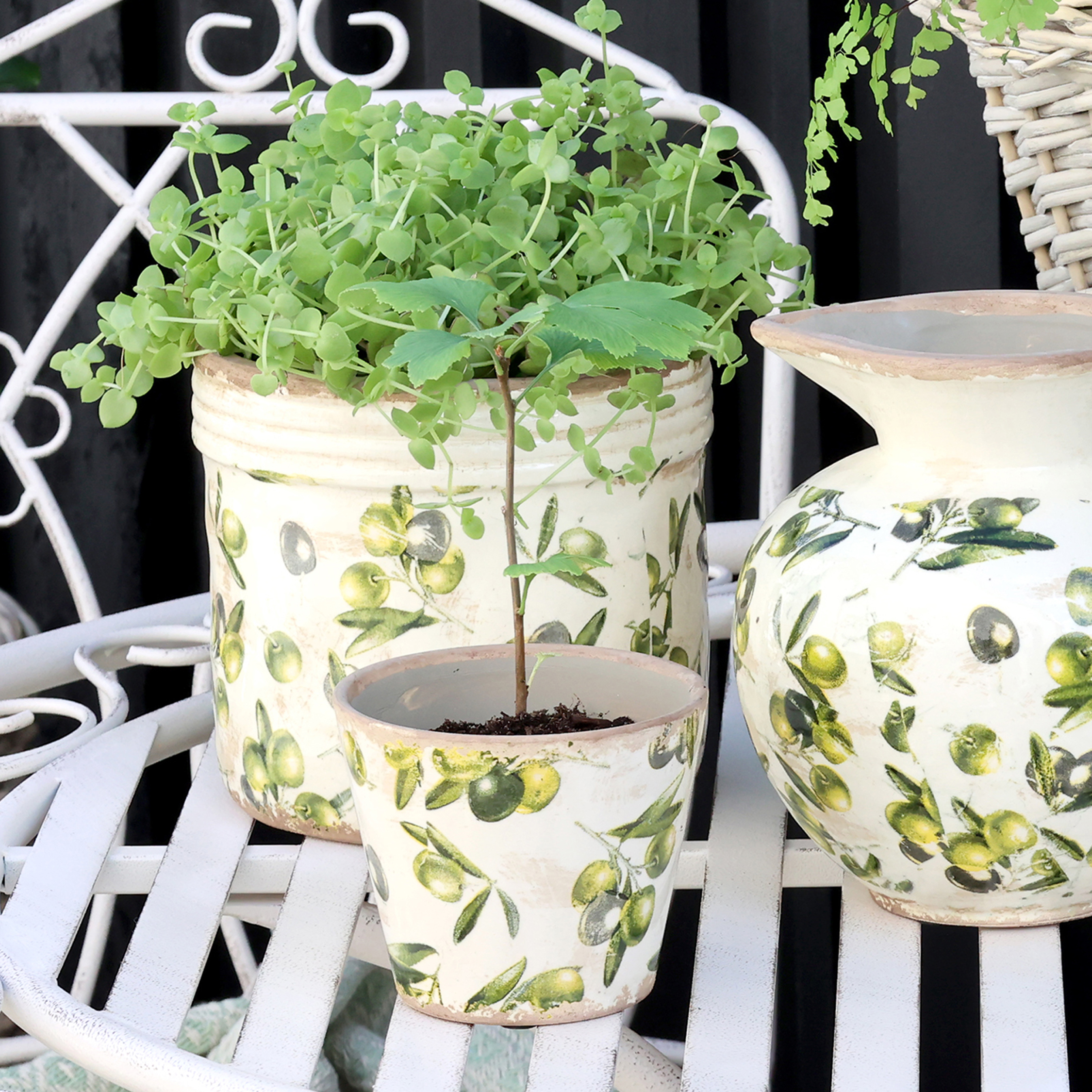 Übertopf mit Olivenmuster, Höhe 9,5 cm